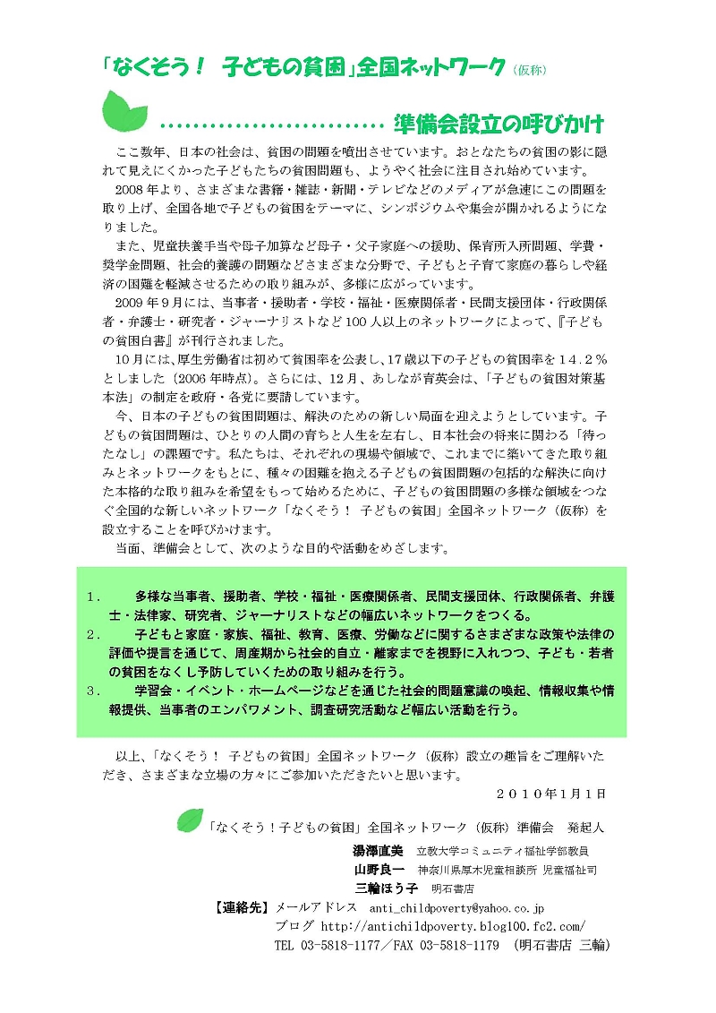 「なくそう!子どもの貧困」全国ネットワーク(仮称)