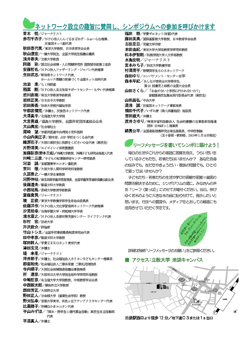 「つながろう!市民発 子どもの貧困解決政策へ(2010.1.31)