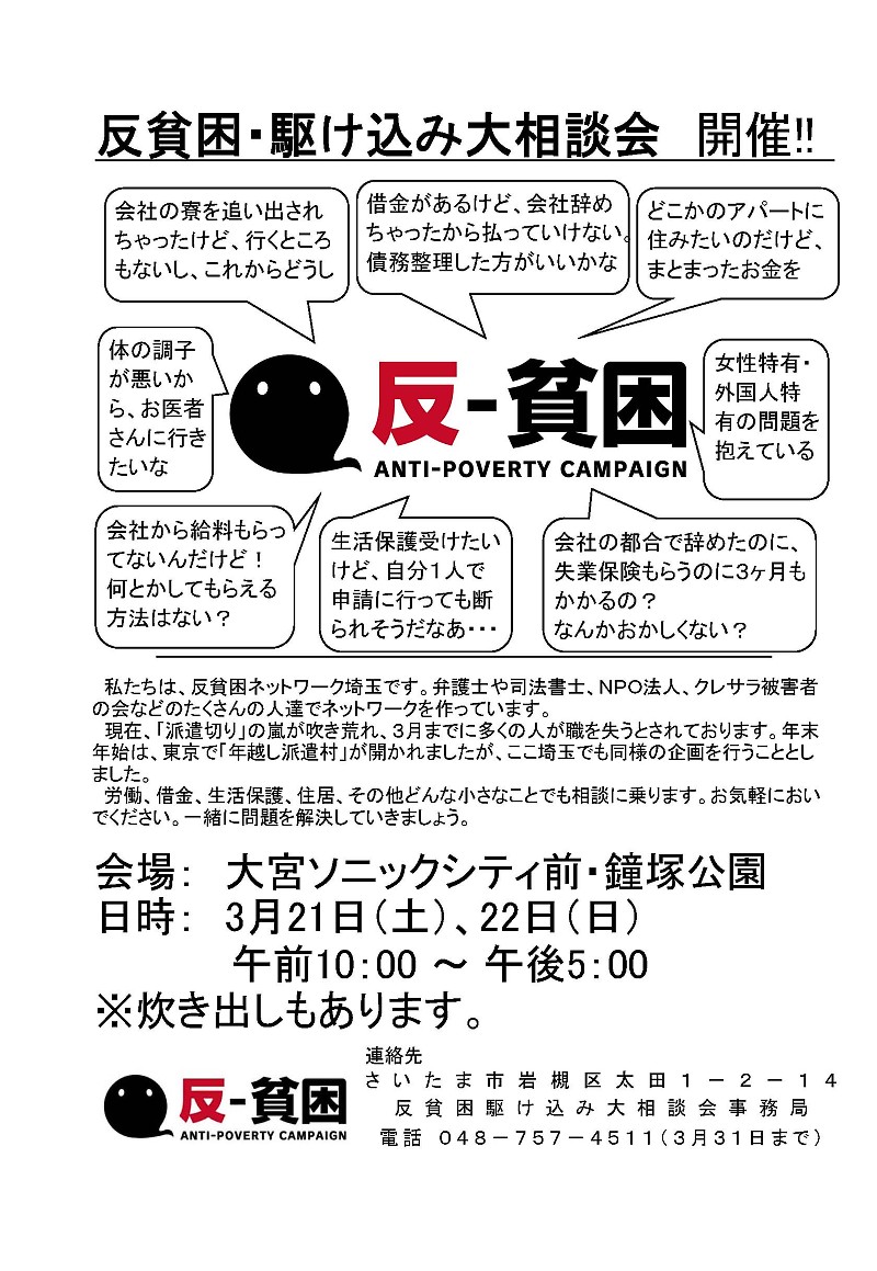 「反貧困・駆け込み大相談会in埼玉」案内(2009.3.21〜22) |
