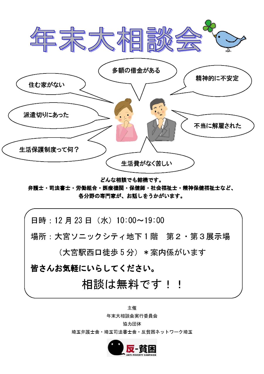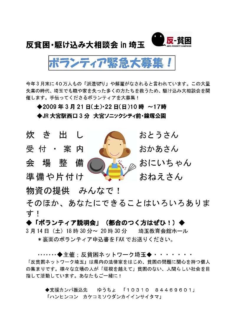「反貧困・駆け込み大相談会in埼玉」ボランティア緊急大募集 |