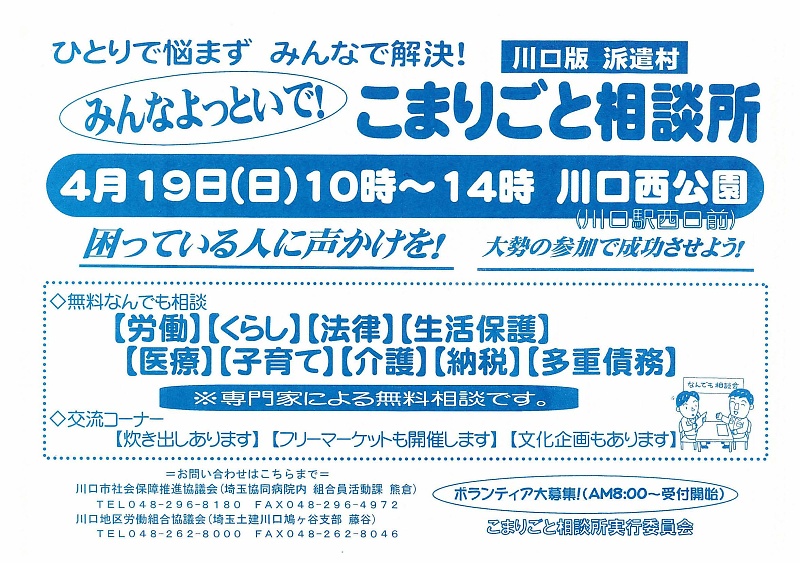 川口版 派遣村「みんなよっといで!こまりごと相談所」案内(2009.4.19) |
