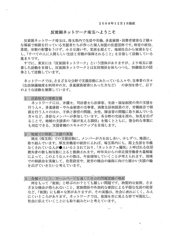 反貧困ネットワーク埼玉の結成(2008.12.1) |