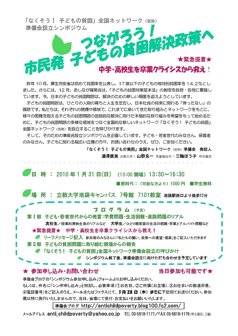 「つながろう!市民発 子どもの貧困解決政策へ(2010.1.31)