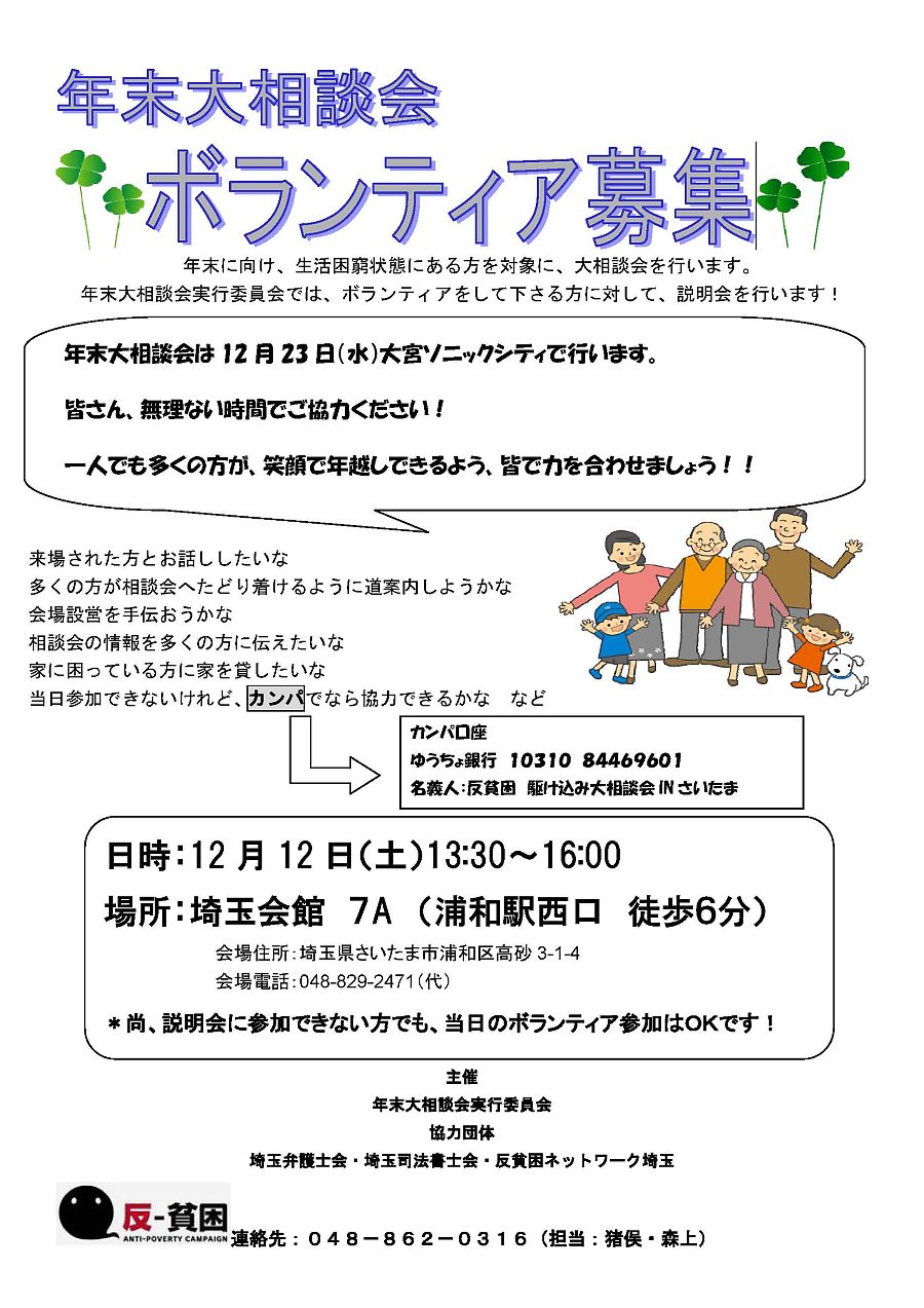 「反貧困・駆け込み大相談会in埼玉」ボランティア緊急大募集 |