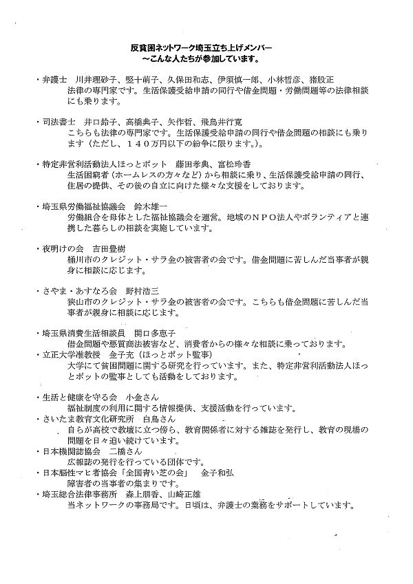 反貧困ネットワーク埼玉の結成メンバー |
