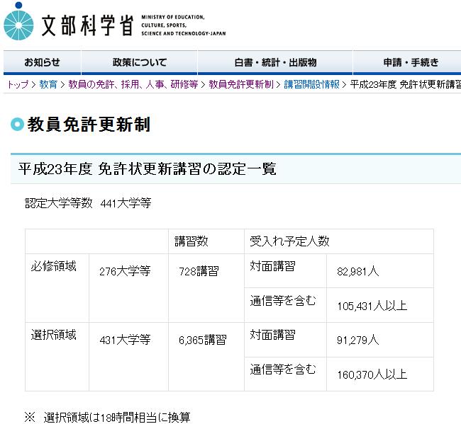 「2011年度関東・東京地区の教員免許更新講座開設情報」