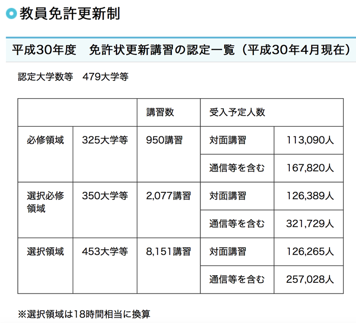 「2018年度関東・東京地区の教員免許更新講座開設情報」